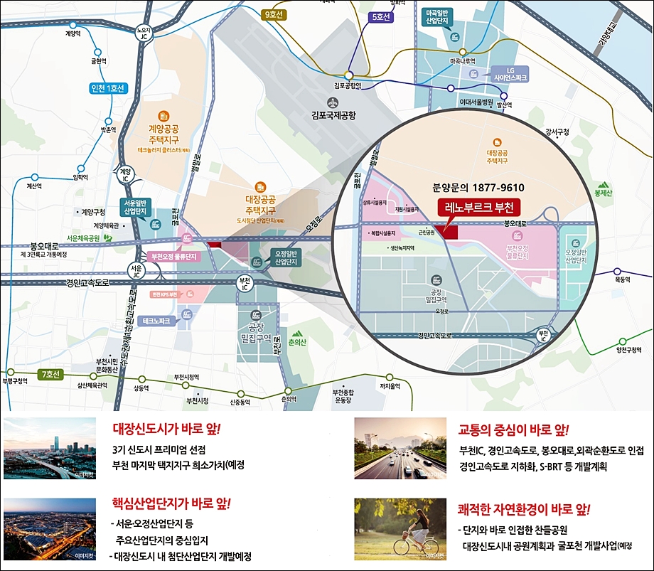 특히, 레노부르크 부천은 제3연륙교(2025년 예정) 개발 수혜를 받는 봉오대로가 바로 인접해 있어 인천국제공항 및 청라국제도시 등으로 이동이 더욱 편리해질 전망입니다.