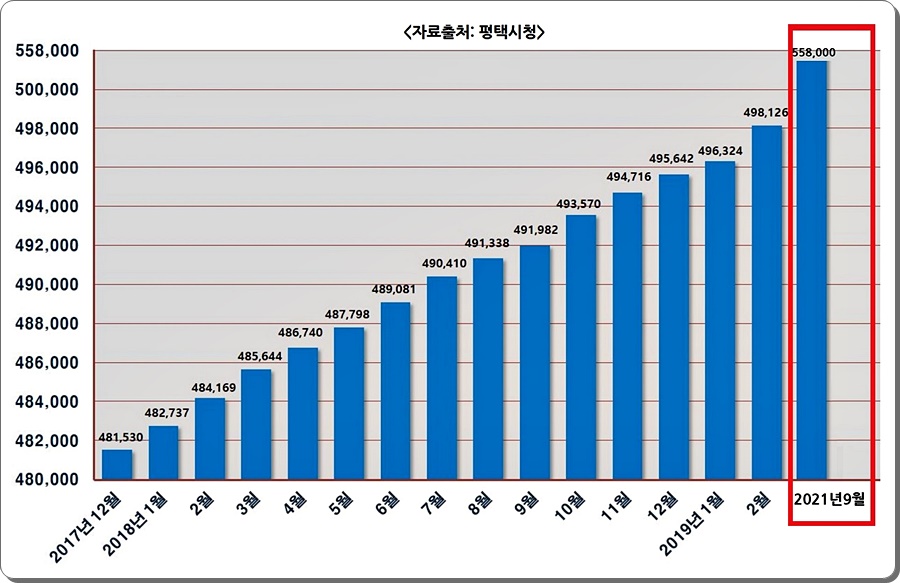평택 인구증가는 폭발적으로 늘어나고 있다.