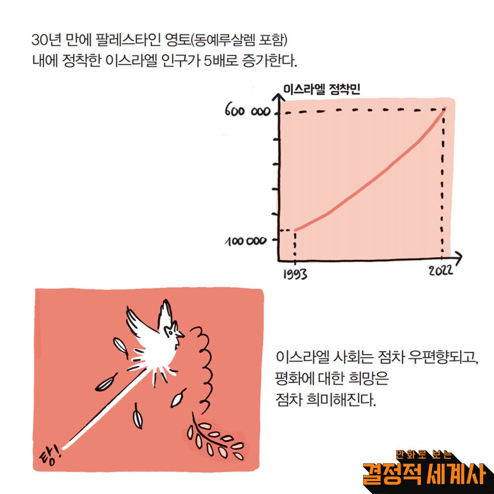 그후 총 4차례 중동전쟁이 있었고, 1993년 오슬로 협정으로 영토를 팔레스타인인에게 돌려주는 대신 팔레스타인은 이스라엘에게 폭력이나 테러를 하지 않겠다는 평화협정을 맺는다.