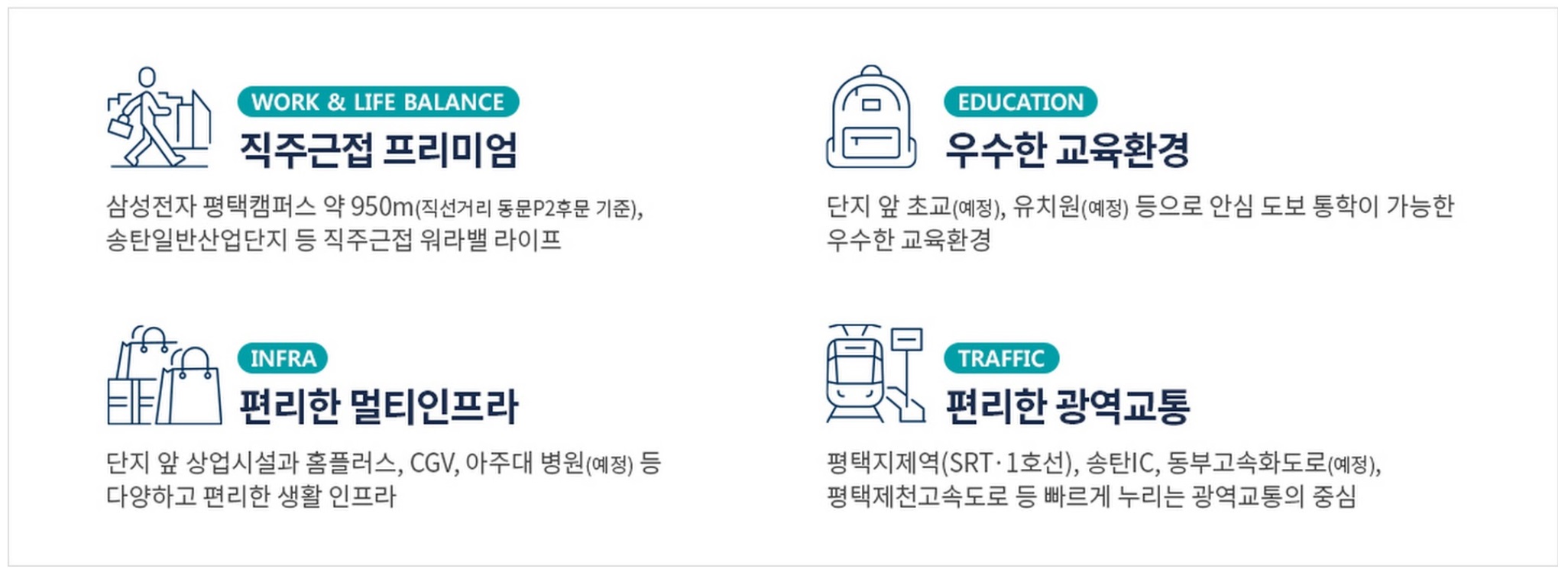 고덕신도시를 사이에 두고있으며 삼성평택캠퍼스와 차량으로 5분거리 입니다.