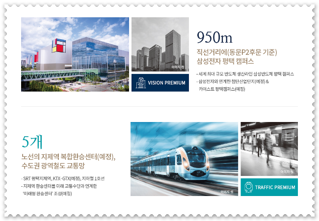 지제역 반도체밸리는 삼성전자와 함께 평택송탄일반산업단지, 평택장당일반산업단지도 인접해 있으며, 인근에는 첨단산업단지(예정), 카이스트 평택캠퍼스도 개발이 추진되고 있어 풍부한 배후 수요를 갖춘 것이 특징이다. 또 지하철 1호선, SRT 노선이 지나가는 지제역이 인접한 만큼, 수도권 및 전국으로의 이동이 편리한 광역 교통망도 우수합니다.