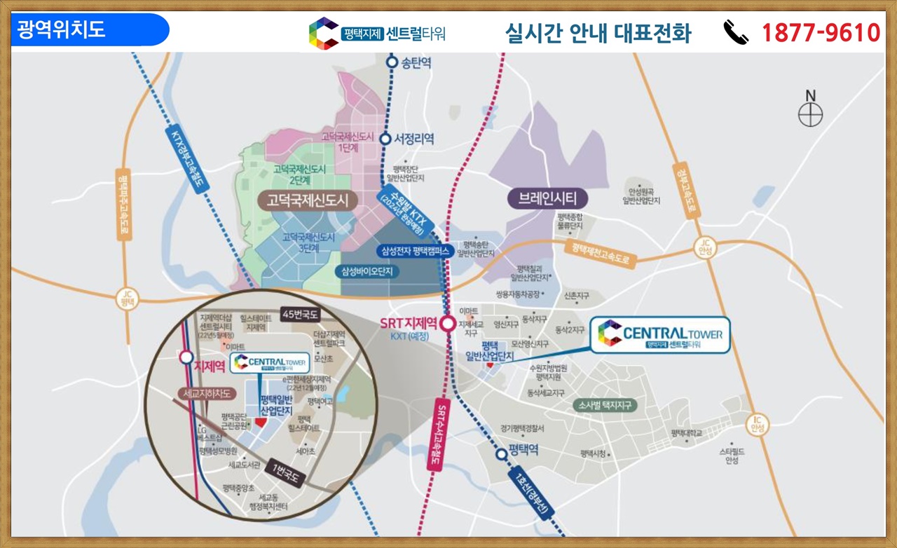 평택 지제 센트럴타워가 위치한 곳은 사방으로 아파트가 들어서 있으므로 근무자들이 숙소를 구하기 무척 좋은 위치입니다.