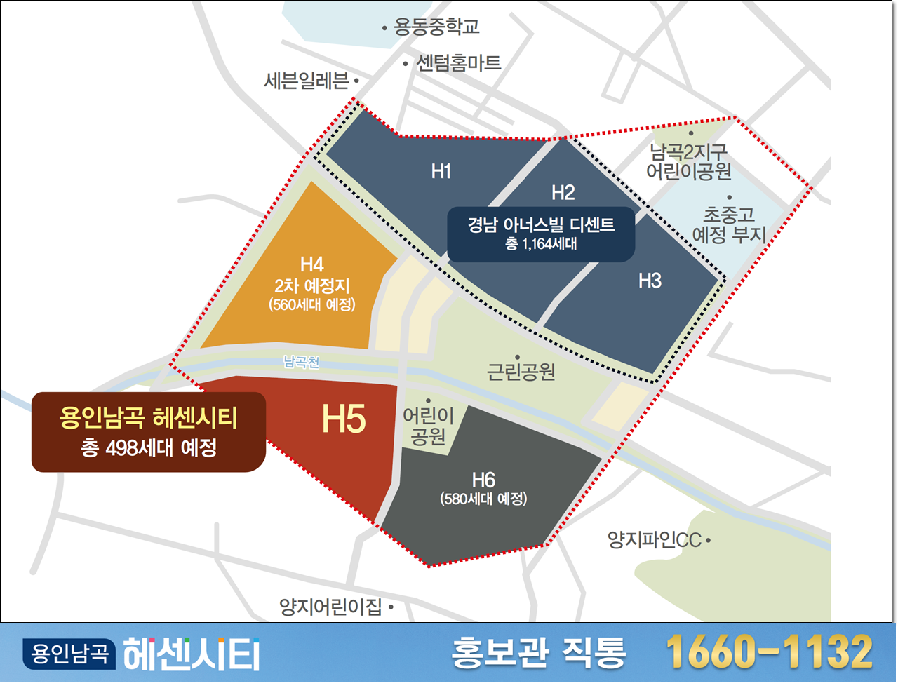 단지가 들어서는 남곡2지구 지구단위계획 구역은 지난해인 2022년 4월 분양을 마친 ‘용인 경남 아너스빌 디센트’ 1,164가구(3개 블록)가 공사 중에 있으며 잔여 블록에 새 아파트까지 들어서면 2,000가구가 넘는 주거타운으로 변신합니다.