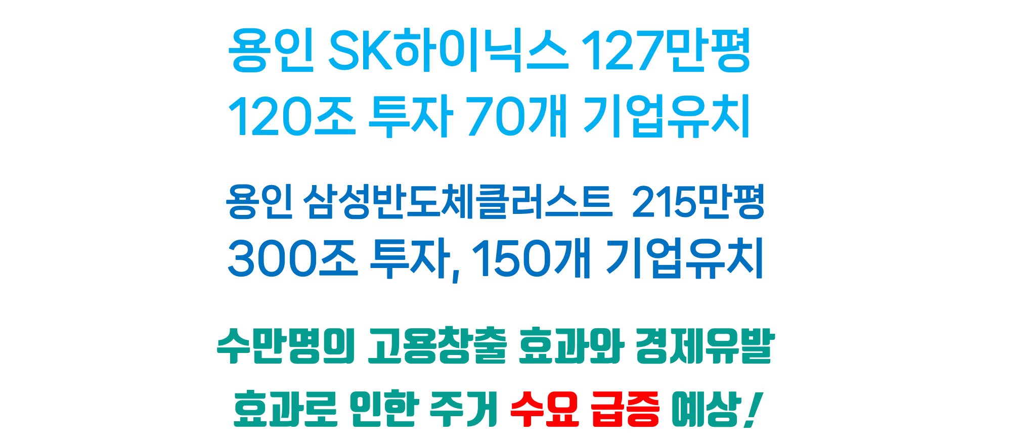 또한 양지면과 고림동, 남사읍 등 처인구 곳곳에서는 ‘용인 국제물류 4.0’ 등 유통업무단지, 물류센터 등이 준공 예정 및 조성이 계획돼 수만 명에 달하는 고용 창출과 경제유발, 인프라 개선 효과로 일대 주거수요가 급증하고 있습니다.