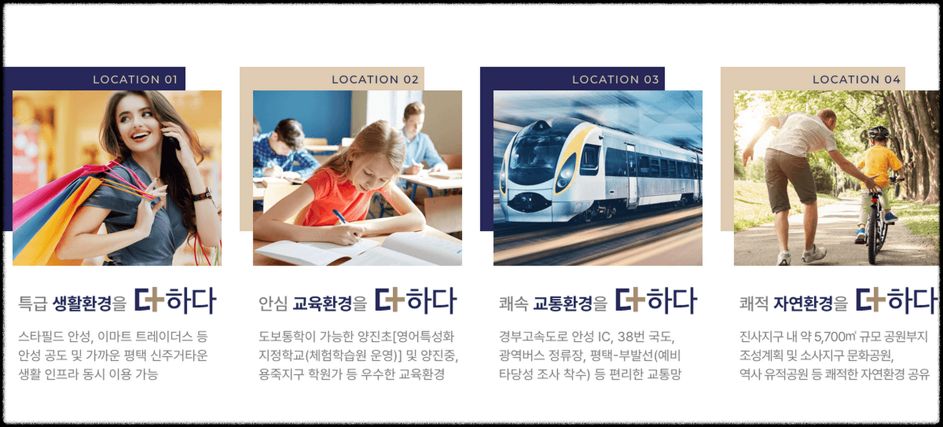 이번에 소개해드릴 안성 진사지구(평택경계선 평택 생활권) 평택 용이동 바로옆에 짓는 효성해링턴 플레이스는 옵션비가 대부분 무료이다 보니 분양가가 알고보면 착한 가격임을 알 수 있습니다.