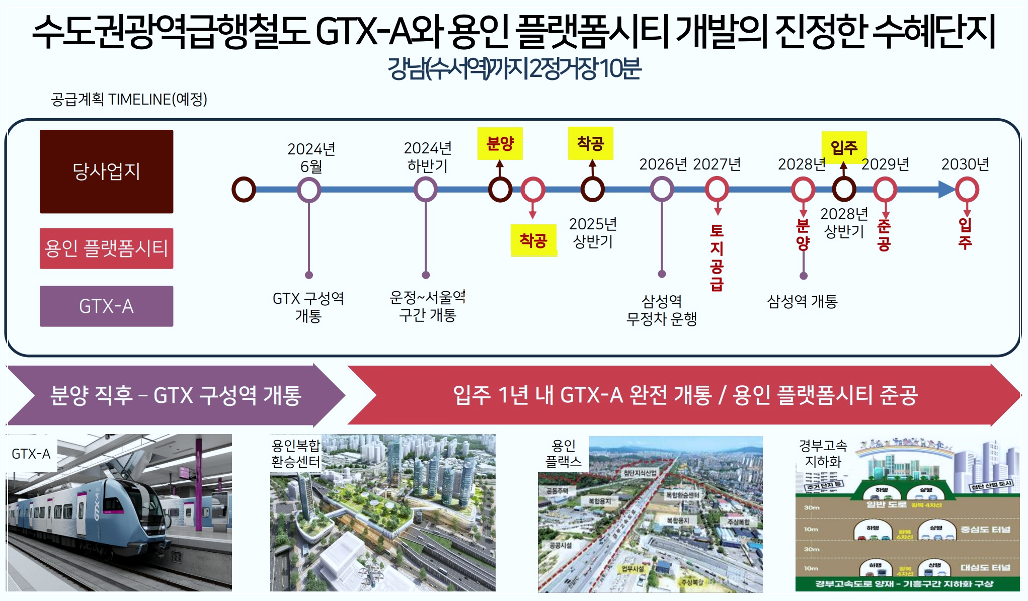 GTX-A노선이 개통되면서 기존 강남까지 소요되던 시간이 20분가량 단축, 10분 대 도착이 가능합니다. 서울 접근성이 대폭 향상되어 오는 2028년 삼성역까지 완전 개통된다면 서울 접근성은 더욱 좋아지게 됩니다.