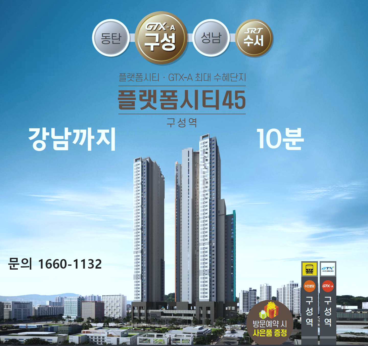 GTX-A노선 수혜단지로 주목을 받는 구성역 플랫폼시티45는 인근 구성역에 기존 수인분당선에 이어 지난 6월 말 GTX-A노선(수서~동탄)이 개통되면서 이에 따른 직접적인 수혜가 기대됩니다.