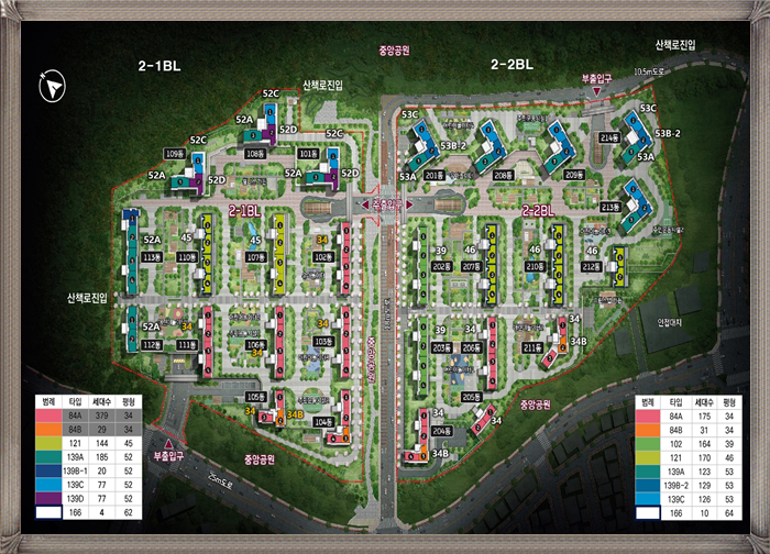 평수는 34평, 39평, 44평, 46평, 53평 등 다양한 평수를 갖췄습니다.