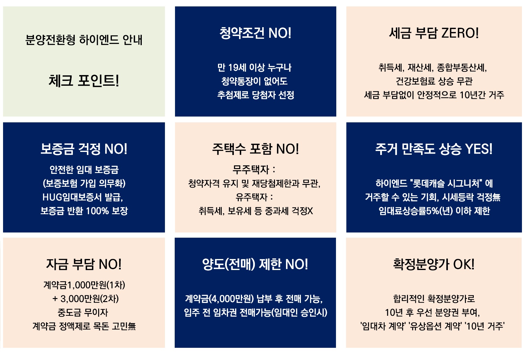 거주기간 중 취득세나 재산세, 종부세 등 세금부담이 전혀 없고, 신축 브랜드 아파트에서 최소 10년간 안정적인 주거생활을 누릴 수 있다.