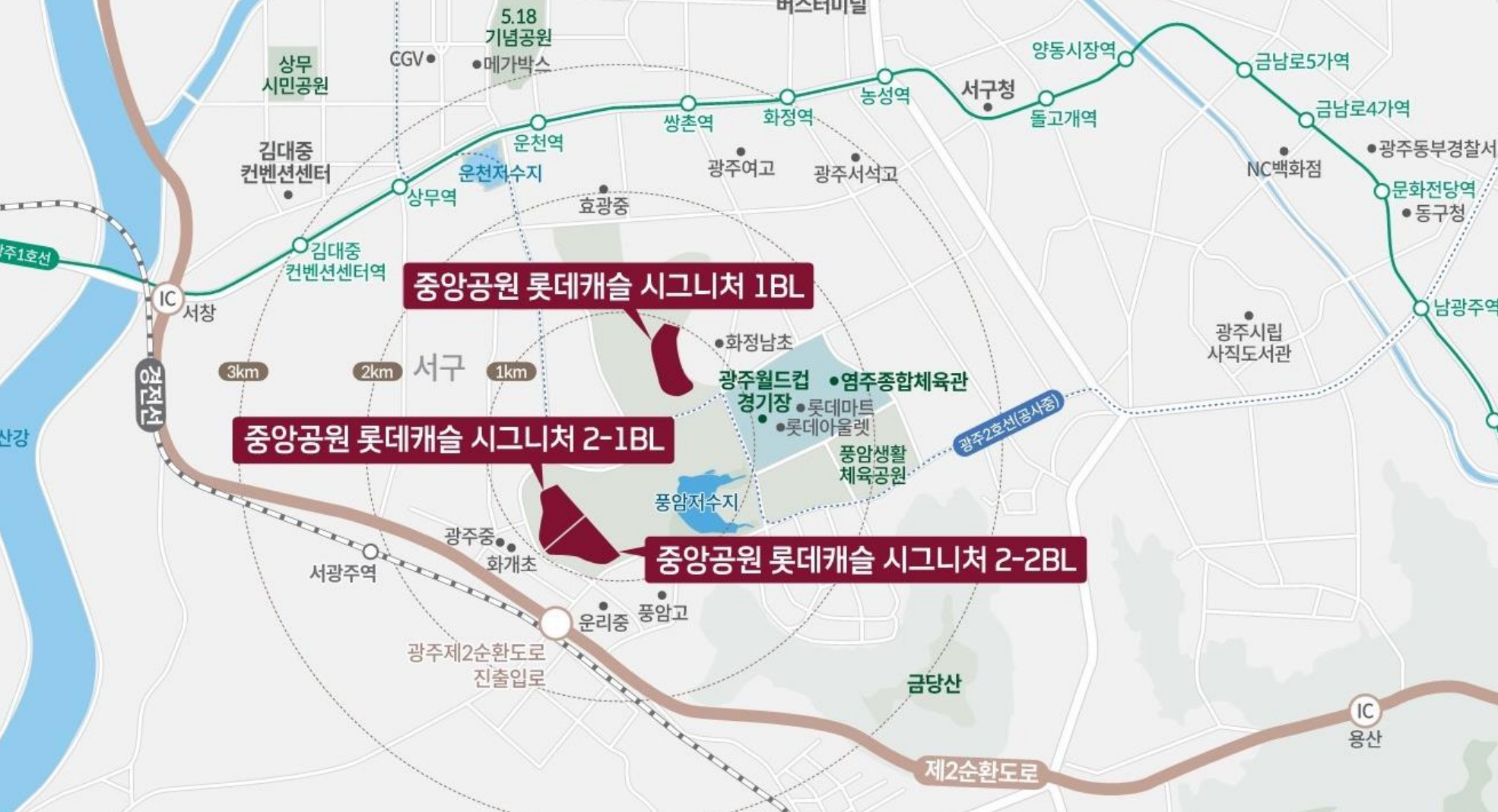 풍암호수를 품은 광주중앙공원 롯데캐슬은 2,772세대 규모의 대단지이다. 이 가운데 10년임대는 분양시장에서 국민평형으로 불리는 전용면적 84㎡타입으로 84㎡A ,84㎡B 총408세대를 공급한다. 입주예정 시기는 2027년 8월이다.
