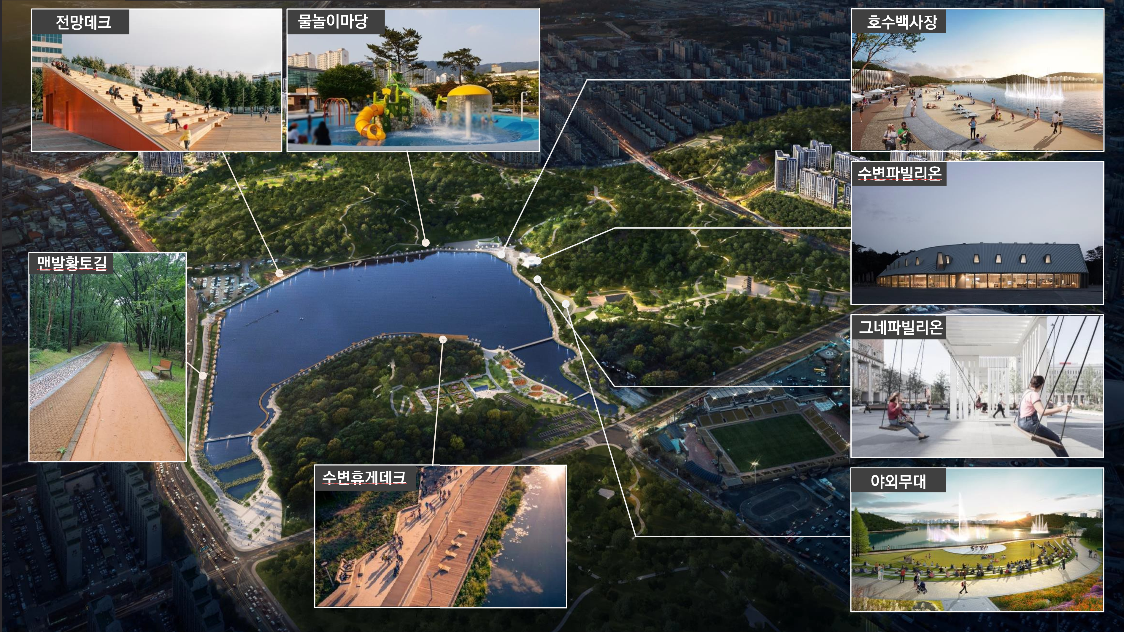 광주 중앙근린공원(1·2지구 280여만㎡, 비공원부지 제외)은 서구 금호동·화정동·풍암동·남구 주월동 일대에 걸친 공원으로 풍암저수지를 포함하고 있습니다. 도시공원 일몰제(20년간 개발하지 않으면 도시계획이 취소되는 제도)에 따라 2020년 7월 공원구역이 해제돼 민간공원개발사업이 진행중입니다.