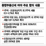 내년 서울 종부세 '폭탄'…공시가격 현실화 땐 더 뛴다 여야가 세율을 최고 3.2%까지 올리는 종합부동산세법(종부세법) 개정안에 합의하면서 내년 종부세 폭탄이 현실화될 전망입니이다. 이번 세율 인상에 공시가격 상승 및 현실화까지 더해지면 서울 주요 아파트를 보유한 다주택자들의 보유세가 내년에 최대 세배까지 늘어날 가능성이 큰 상황입니다. 7일 국회 및 정부 당국에 따르면 여야는 이날 오후 세율을 현행보다 0.1~1.2%포인트 올리는 종부세 개정안을 국회 본회의에서 처리할 예정이다. 이번 개정안은 지난 9·13 부동산 대책에서 정부가 내놨던 최고 세율 3.2%안과 큰 차이가 없습니다. 다. 만 조정대상지역 내 2주택자에 대한 세부담 상한을 300%에서 200%로 낮췄다. 이에 따라 서울 등 조정대상지역의 ..