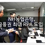 NH농협은행은 가계여신, 기업여신, 카드 등의 주요업무에 ‘로봇프로세스자동화(RPA)’를 도입했다고 6일 밝혔습니다. 농협은행은 서울 서대문 본부에 디지털 ‘워크포스(workforce)’ 운영을 총괄하는 ‘RPA 컨트롤룸’을 구축해 24시간 운영에 들어갔습니다. 운영로봇수는 총 40대로, 일일 처리량이 국내 금융사 중 최대 규모라는게 농협은행의 설명입니다. RPA 시스템은 사람이 수행하던 반복 업무를 로봇 소프트웨어가 자동화하여 고부가 가치의 업무에 사람이 집중할 수 있도록 지원하는 방식입니다. 농협은행은개인여신 자동기한연기, 카드가맹점 계좌 검증, 비대면 카드심사, 기업체 휴폐업 정보 조회 등 7개 단계에 적용했습니다. 농협은행 관계자는 “RPA의 적용 영역이 백오피스에서 프런트오피스로 이동하면 고객서..