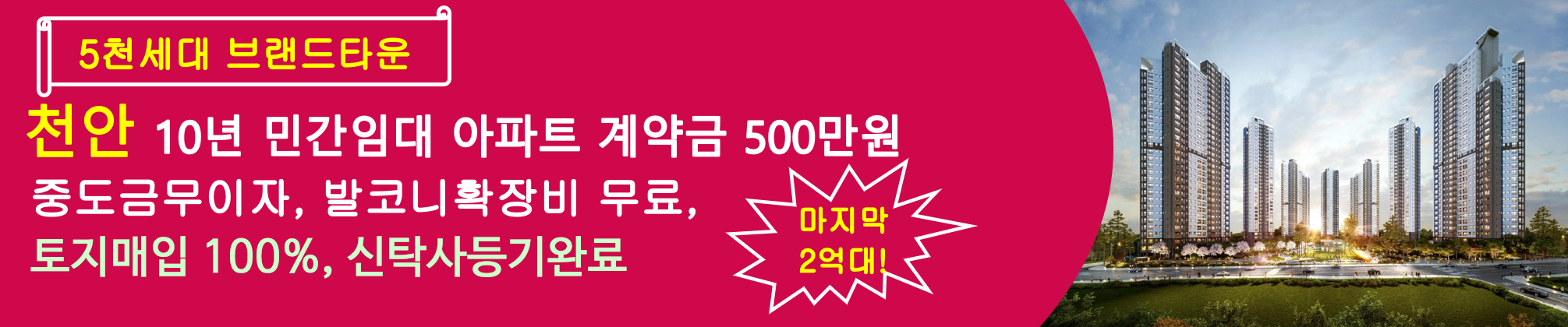 여기에 두정역을 중심으로 반경 1km 내에 기입주 단지와 입주 예정 단지를 포함해 약 40개 단지, 약 2만 가구의 미니 신도시급 주거지가 형성될 예정입니다. 두정동 일대가 기존 이미지를 벗고 천안의 신흥주거지역으로 떠오를 전망으로 향후 높은 미래가치도 기대해볼 수 있습니다.